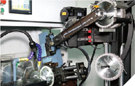 ● 半封閉環(huán)保友好型設計,機械手自動裝夾鋸片,一人可操作10-15臺設備。